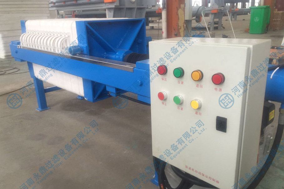 液压自动压紧压滤机:采用电接点压滤表实现自动保压,操作方便,运行稳定,结构可靠,适用于过滤面积较大的压滤机。